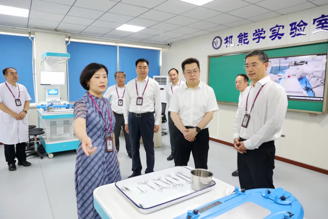 王庆东一行实地考察了我校校史馆、基础医学教学实验中心、新校园建设项目沙盘等。深入了解我校的办学历史、建设发展、主要成绩、社会服务和未来愿景等,进一步了解我校教育教学等内涵建设情况,认真听取新校园接续建设总体情况汇报,对我校近年来各项事业建设发展取得的成绩给予肯定。