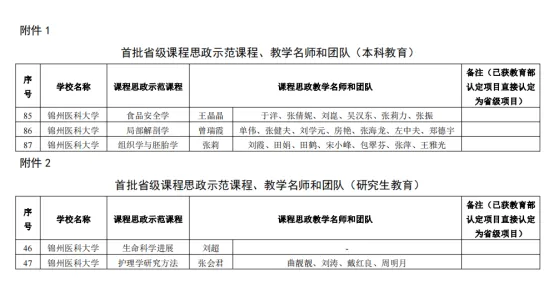 日前,辽宁省教育厅公布了首批省级普通高等教育课程思政示范项目名单,我校五门课程入选首批省级普通高等教育课程思政示范项目。其中,王晶晶教授牵头的《食品安全学》、曾瑞霞教授牵头的《局部解剖学》、张莉教授牵头的《组织学与胚胎学》等3门课程获评本科教育课程思政示范项目(示范课程、教学名师和团队);刘超教授牵头的《生命科学进展》、张会君教授牵头负责的《护理学研究方法》等2门课程获评研究生教育课程思政示范项目(示范课程、教学名师和团队)。