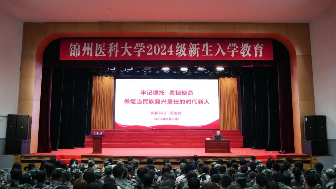 闻德亮首先代表全校师生欢迎2024级新同学选择锦医,来到锦医,为锦医增添新活力、新光彩。围绕“锦州”和“锦医”两个关键词,他从英雄城市培根,红色历史育人;英雄精神传承,红色基因铸魂;锦医学子向党,青春勇担使命三个方面,紧密结合习近平总书记在锦州考察时发表的重要讲话精神,带领2024级新同学重温锦州红色历史文化和锦医红色发展历程,引领同学们牢记习近平总书记对新时代青年寄予的厚望,把党的初心和使命铭记于心,用奋斗画出青年底色,用奋斗谱写新时代篇章,用奋斗跑出中国新征程。