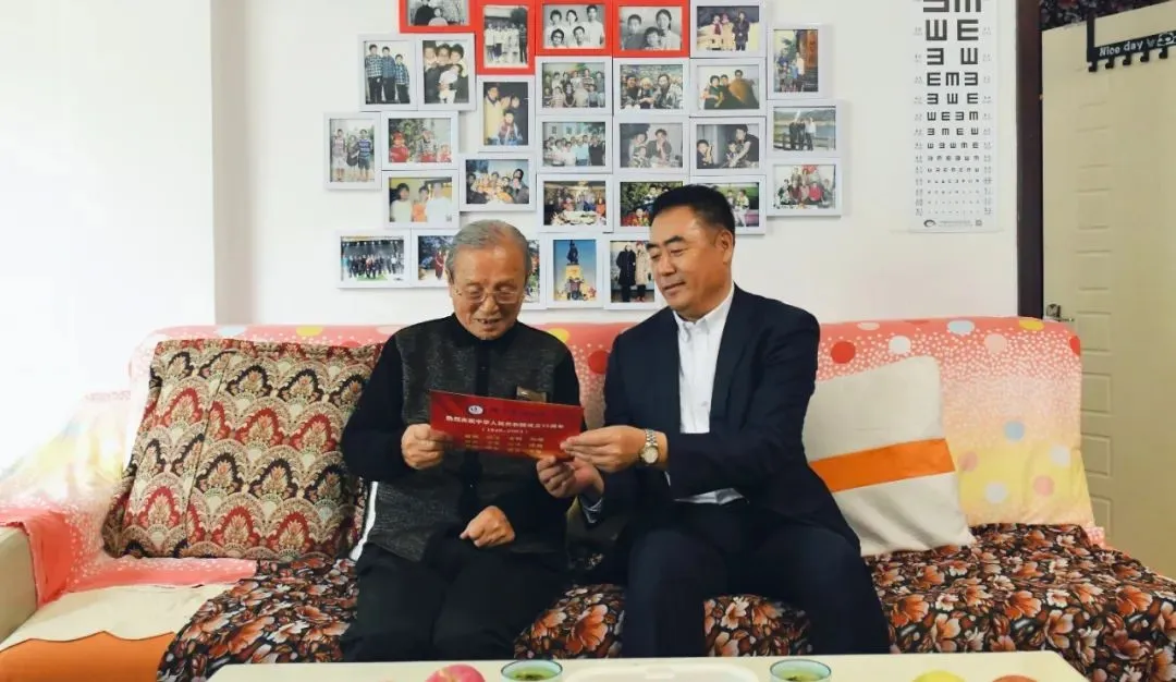 前行不忘耕耘者,浓浓关怀暖人心。为庆祝中华人民共和国成立75周年,深入学习贯彻习近平新时代中国特色社会主义思想,党的二十大和二十届二中、三中全会精神,弘扬党的光荣传统和优良作风,体现党组织对老干部、老党员的关心和爱护,9月30日,学校党委书记闻德亮,党委副书记、校长曲巍和学校党委常委、校领导分别走访慰问了中华人民共和国成立前参加革命工作的老干部、老党员,给他们送去党的温暖和关怀,向他们致以亲切的问候和崇高的敬意。