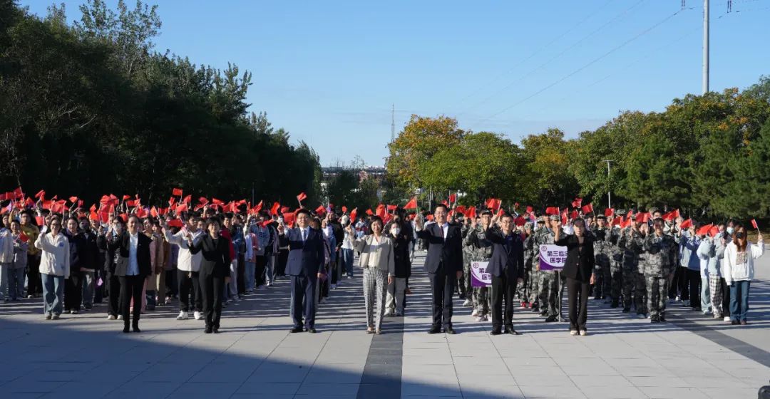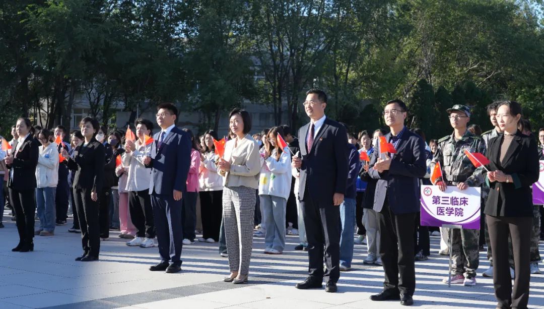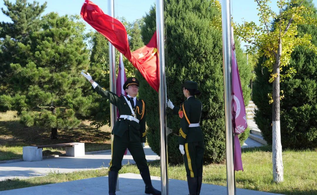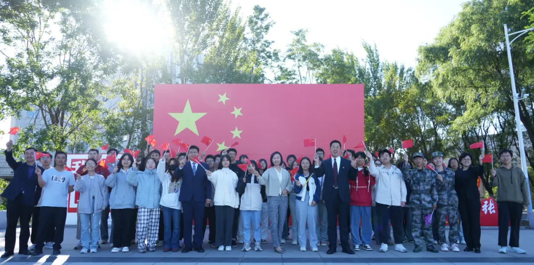 在庆祝中华人民共和国成立75周年之际,迎着清晨的第一缕曙光,10月1日,学校党委组织师生在东校园北辰广场举行庄严肃穆的升国旗仪式,共同庆祝伟大祖国75岁生日,共同祝愿伟大祖国繁荣昌盛、国泰民安。现场师生满怀深情、精神振奋、高唱国歌,向国旗行注目礼,坚定的目光中充满了自豪和骄傲。学校党委常委、副校长张丽娟,党委常委、党委统战部部长郝慧生、党委宣传部部长赵理,党委学生工作部、校团委和500余名师生代表参加升国旗仪式。
