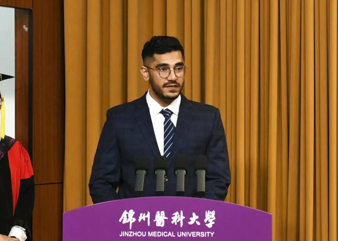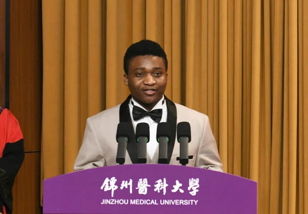 来自坦桑尼亚的留学生代表艾州迪同学发表毕业感言。他深情回顾了在锦医的学习生活,感谢母校的培养和老师们的悉心教导。他表示,学校不仅传授了专业知识,还通过丰富多彩的文化活动,让他们深刻感受到中国文化的博大精深。今后,他们将把“厚德修身 精术济世”的校训铭记心中,将中国的大爱精神和锦医情怀传承好、发扬好。