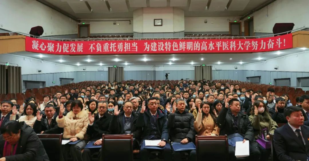 闻德亮指出,本次会议是在全校上下深入学习贯彻习近平总书记在辽宁考察时的重要讲话和重要指示精神,全面落实省委十三届九次全会决策部署,按照学校第二次党代会“123510”发展战略和全面振兴新突破三年行动决胜之年目标任务,着力推进特色鲜明的高水平医科大学建设新征程的关键时期召开的一次十分重要的会议。会议进一步统一思想、汇集智慧、凝聚力量,是一次鼓舞人心、催人奋进的大会,也是一次明确目标、落实任务的大会。