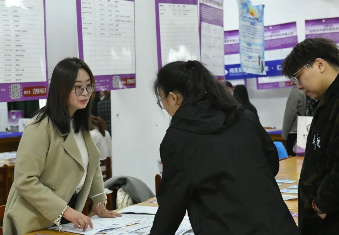 招聘会现场组织有序、沟通融洽、气氛热烈,用人单位向毕业生发放招聘宣传手册,介绍单位基本情况及岗位招聘需求,用心用情招聘人才。毕业生们详细浏览招聘海报内容,积极主动投递简历,并就就业所在区域经济社会发展、工作安排、晋升渠道、职业发展等与用人单位深入交流。表现优秀、双方认可的毕业生和用人单位现场达成了签约意向。