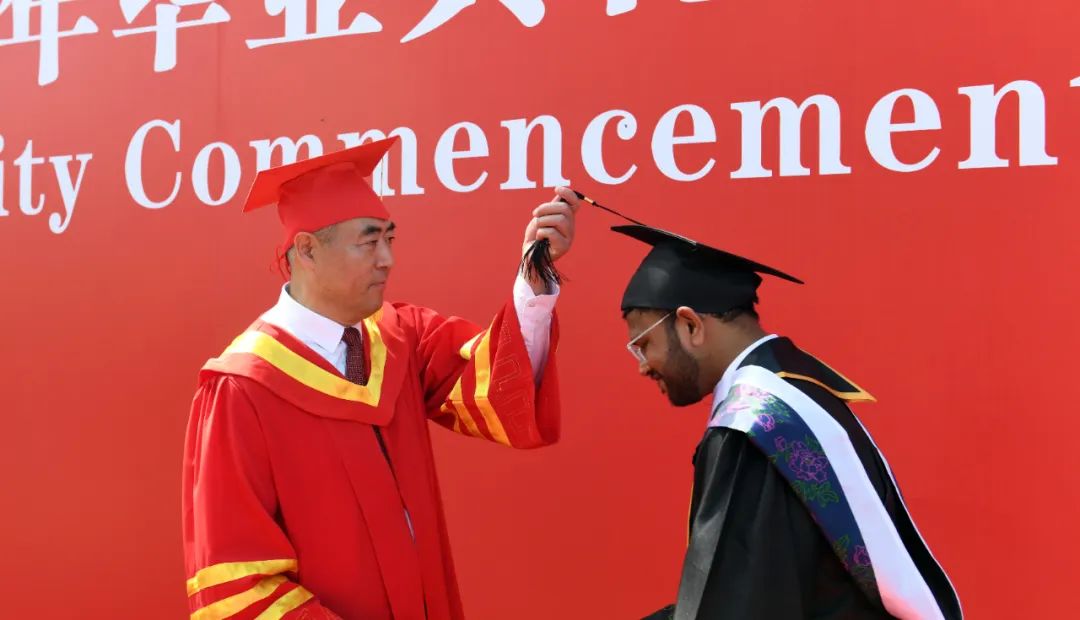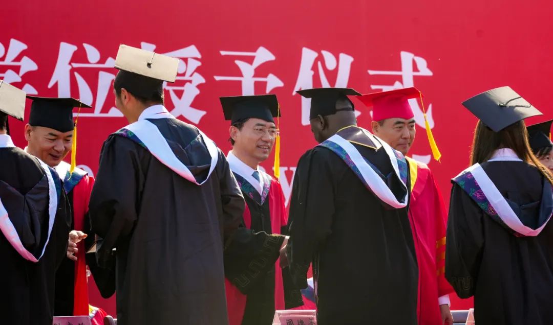 毕业典礼结束后,曲巍校长为2025届毕业生代表拨正流苏,授予学位。