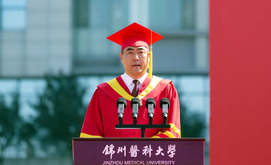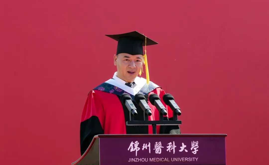 他表示,2025届毕业生见证了锦医的发展。近年来,锦医人锐意开拓、使命在肩,砥砺前行、初心如磐,生动书写着主动融入新时代发展大局的一笔一划,铿锵绘就着奋力开创高质量发展新篇的一撇一捺。学校第二次党代会提出“123510”发展战略,全面振兴新突破三年行动的扎实推进,校园三大改造工程惠及师生,新校园建设项目一期工程取得实质性进展,获批教育部全国首批健康学校,获批博士学位授予重点立项单位。2025届毕业生更是捷报频传,用拼搏的汗水铸就了成长的勋章。学校与2025届毕业生一道披荆斩棘、凯歌而行,共同谱写了学校“十四五”发展的靓丽篇章,共同汇聚了锦医昂扬向上的澎湃力量!