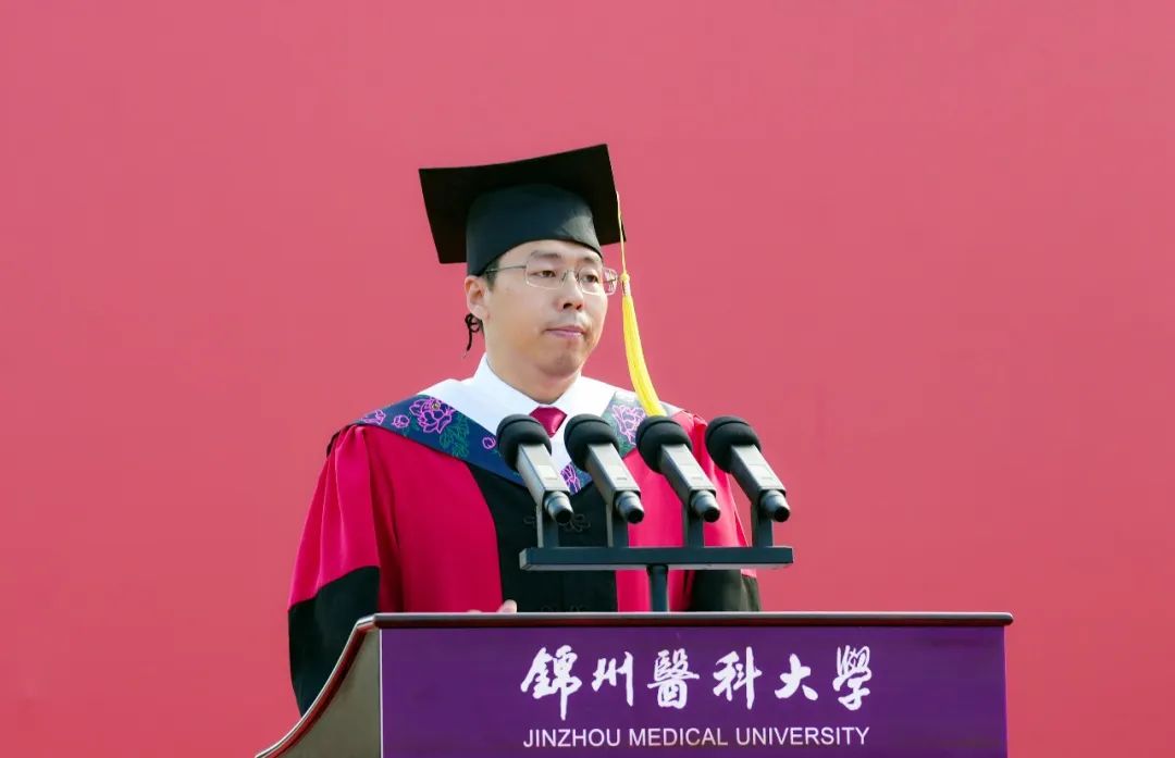 此去星辰大海,莫忘来时路;归来锦绣年华,仍是少年心。辽宁省教学名师、研究生学院副院长左中夫教授代表全体教师将所有的祝福和期待化为深情嘱托。他表示,十年砺剑终成锋,一朝破竹势如虹,致敬青春,致敬亲情,致敬每一个人的无私托举与传承!他深情回忆了与同学们朝夕相处的学习生活时光,希望同学们心怀凌云之志,做胸怀家国的追光者;躬行厚德修身,做德润身心的修行者;勤修精术济世,做知行合一的奋斗者。他祝福全体2025届毕业生心向暖阳,步履生花,让青春深深扎根基层,闪耀最耀眼的锦医之光!