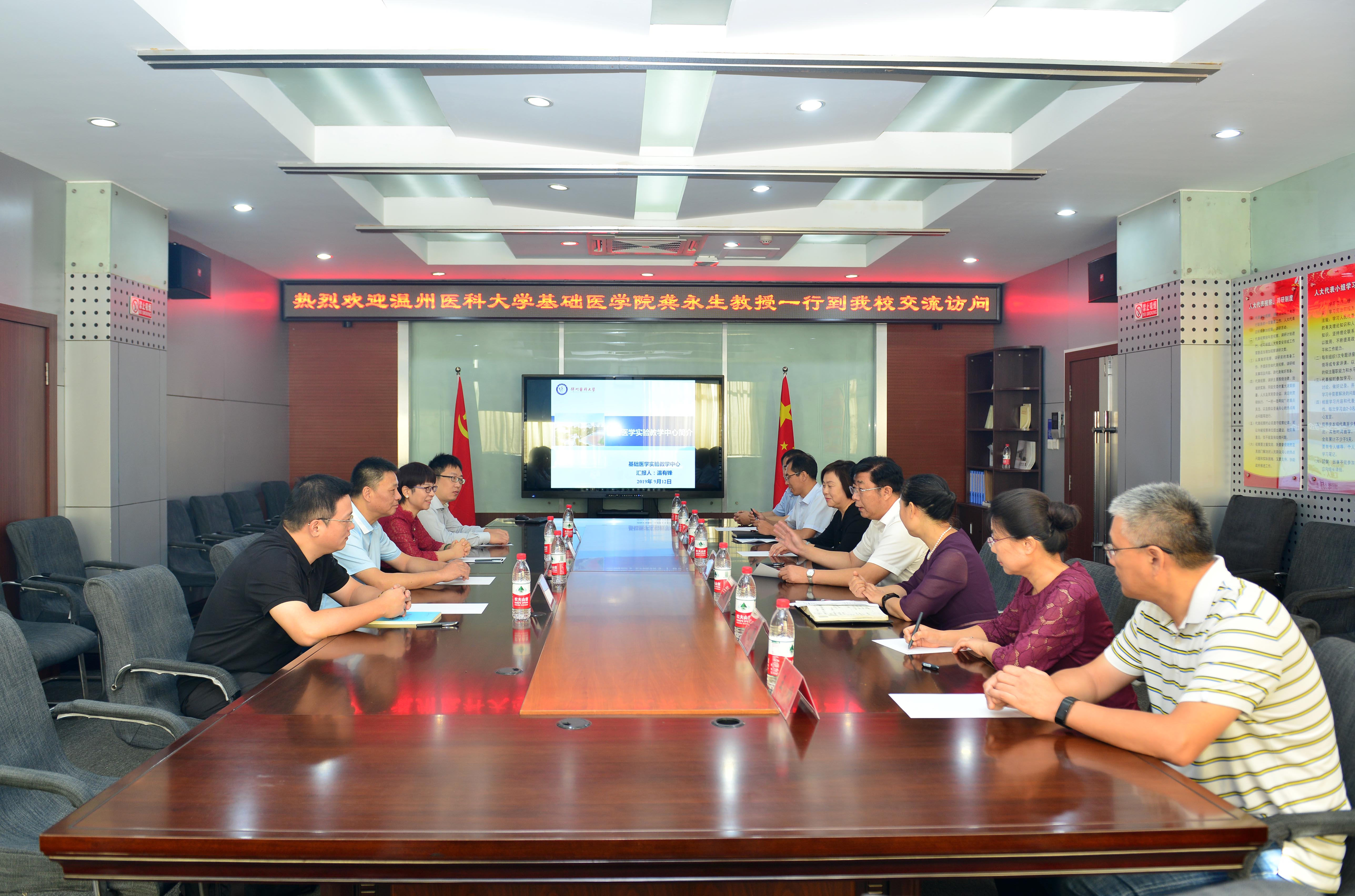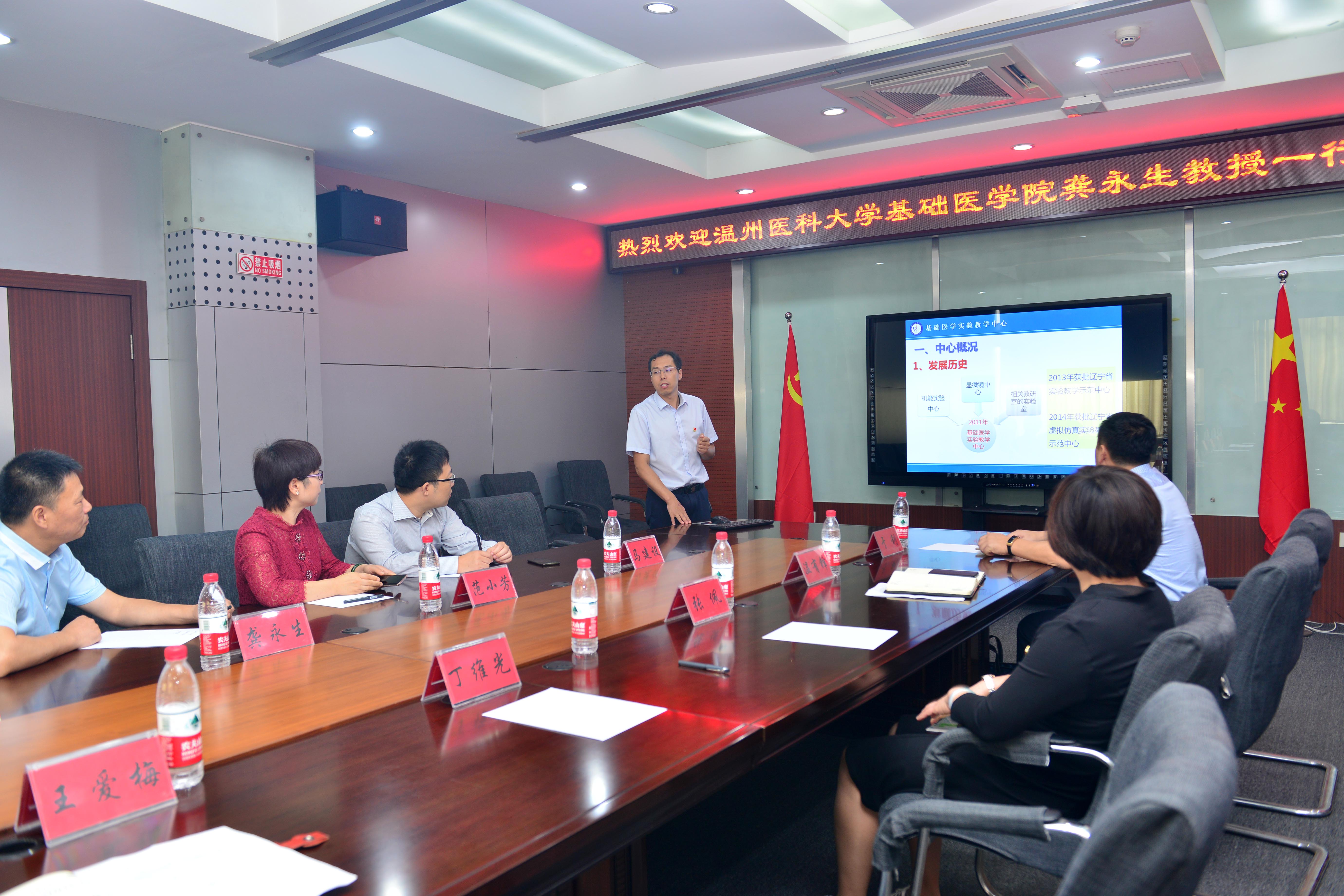 9月12日,中国病理生理学会常务理事、机能学实验教学工作委员会主任委员、温州医科大学基础医学院院长龚永生教授一行4人来到我校,考察交流实验中心建设工作暨2021年全国青年教师机能学实验技能大赛承办的准备工作。学校校长丁维光出席交流会并讲话,基础医学院、基础医学实验教学中心全体班子成员参加交流。