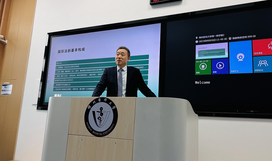 为进一步规范学校来华留学生教育和国际交流与合作的管理,切实维护学校利益及国际声誉,维护广大师生的合法权益,有效管控相关领域的各种国际法律风险,9月26日13:30国际交流合作中心特邀请吉林大学法学博士、辽宁弘鼎胜律师事务所创始合伙人高潮律师来我校做题为“国际法在国际交往和高校国际交流合作中的应用”的专题讲座。各二级单位主管国际交流与合作工作的负责人,国际教育学院、体育与运动康复学院和护理学院管理人员及有国际交流合作意愿的师生参加了讲座。
