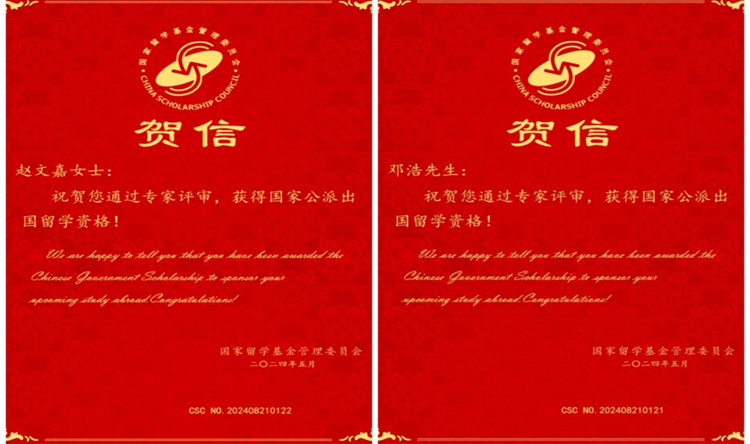 根据国家留学基金委的工作部署和辽宁省教育厅的通知要求,经个人申报、院系推荐、学校审核及国家留学基金委审批,我校推荐的邓浩、赵文嘉2名同学获得“2024年国家建设高水平大学公派研究生项目”的国家公派出国留学资格,计划于2024年秋季分别赴德国美因茨大学与西班牙巴塞罗那大学攻读医学博士学位。