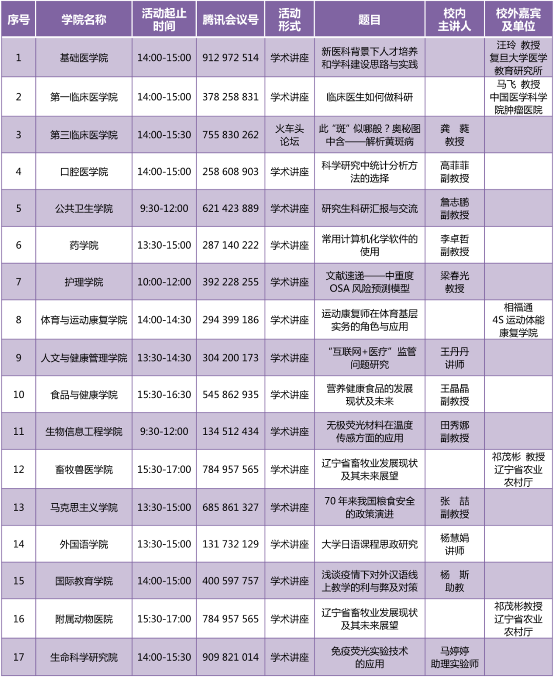 为营造学校浓厚的学术氛围,搭建学术平台,拓宽学术视野,提升广大师生的学术水平,10月14日,围绕学术活动日,各学院将开展丰富多彩的学术活动,请全校师生踊跃参加。具体活动安排如下:
