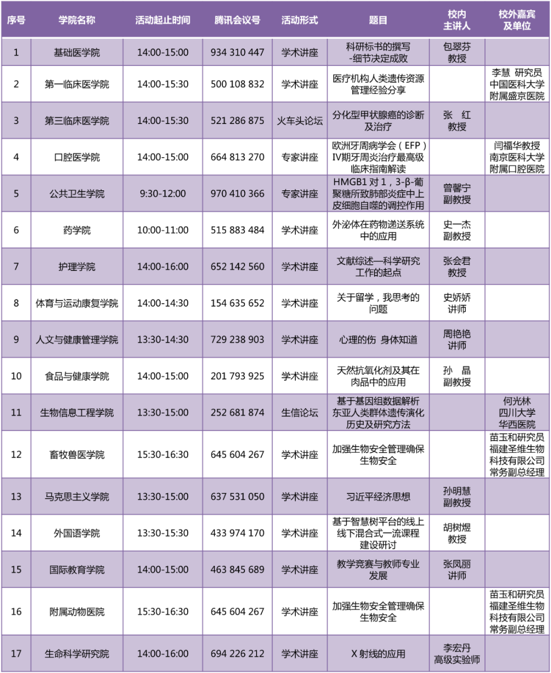 为营造学校浓厚的学术氛围,搭建学术平台,拓宽学术视野,提升广大师生的学术水平,9月30日,围绕学术活动日,各学院将开展丰富多彩的学术活动,请全校师生踊跃参加。具体活动安排如下: