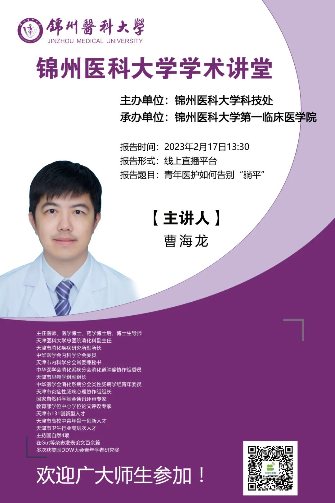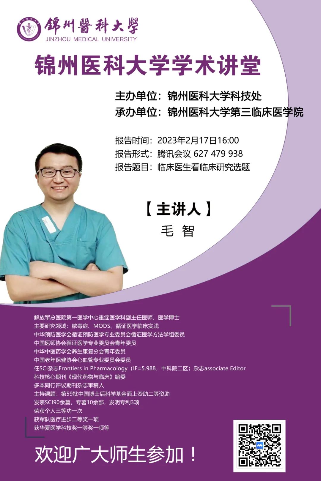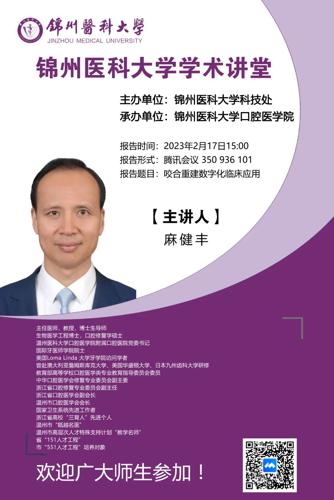 为营造学术氛围,加强学术交流,2月17日,由学校科技处主办,第一临床医学院、第三临床医学院、口腔医学院、护理学院、生物信息工程学院承办的学术讲堂如期举行,届时多名专家将为大家带来精彩的学术讲座,希望全校师生踊跃参加!