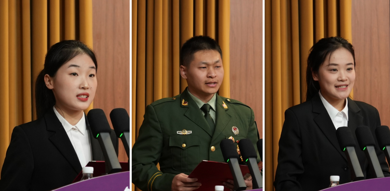 2024年辽宁省大学生年度人物提名奖获得者、口腔医学院口腔医学专业2020级本科生马丰源代表先进个人发言。他从“走进军营,在军队这个大熔炉中追逐青春梦想”“回到锦医,逐渐学会了如何在学术与实践中不断追求卓越”“追寻师长的足迹,做一名可堪大任的新时代锦医学子” 等方面分享了学习与成长经验。