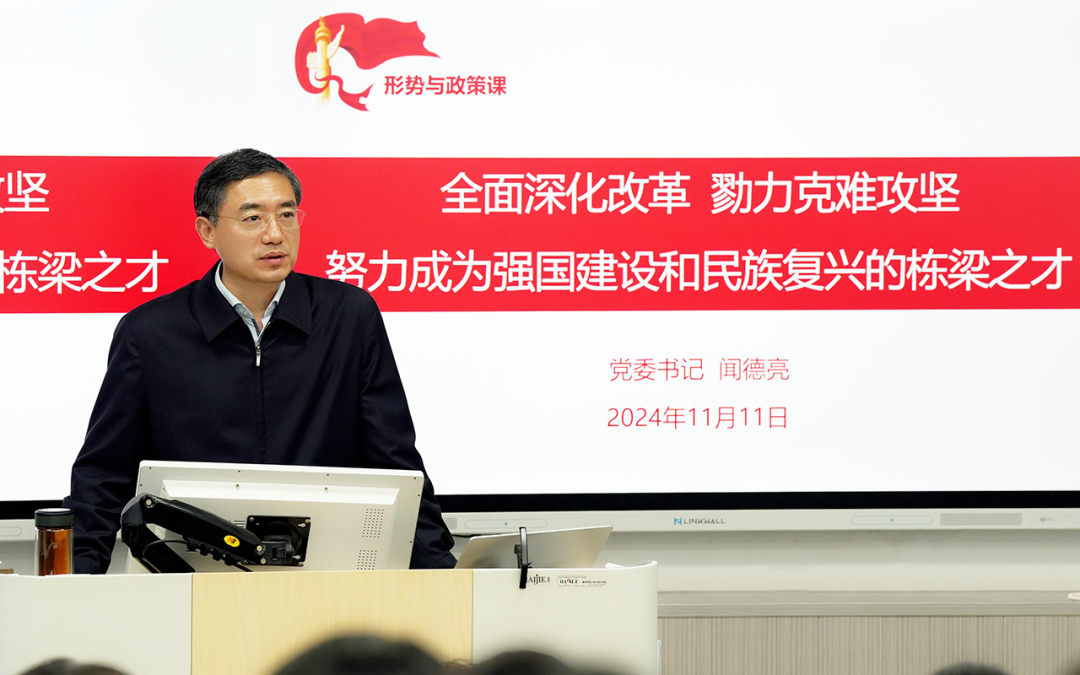 为深入学习贯彻落实党的二十大和党的二十届三中全会精神,坚持用习近平新时代中国特色社会主义思想铸魂育人,引导教育学生积极投身中国式现代化伟大实践,11月11日、11月13日,学校党委书记闻德亮教授走进思政课堂,为公共卫生学院预防医学专业、第一临床医学院临床医学专业卓越班的本科生讲授了一堂启智润心的专题形势与政策课。